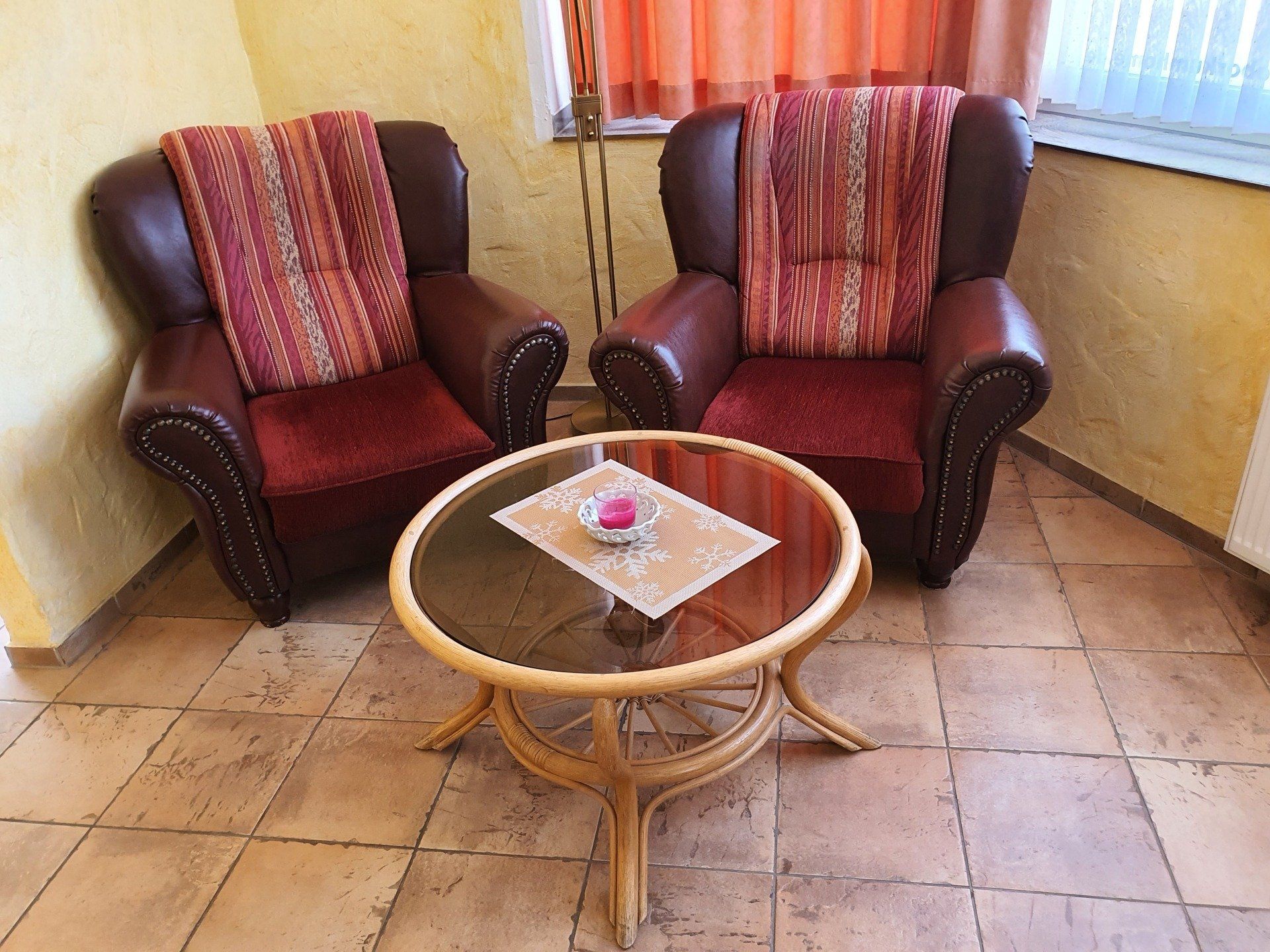- Ihren Kaffee können Sie morgens in Ruhe am Esstisch trinken. Abends laden die Sessel mit Hocker zum gemütlichen Fernsehen oder Lesen ein.