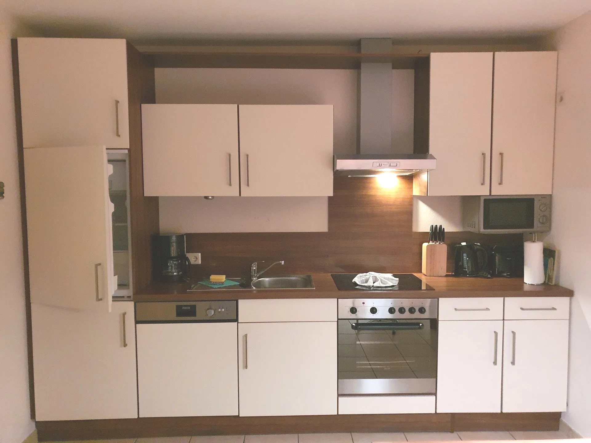 - Die Küchenzeile ist natürlich mit allen notwendigen Extras, wie Mikrowelle, Spülmaschine, Backofen, Wasserkocher etc. ausgestattet.