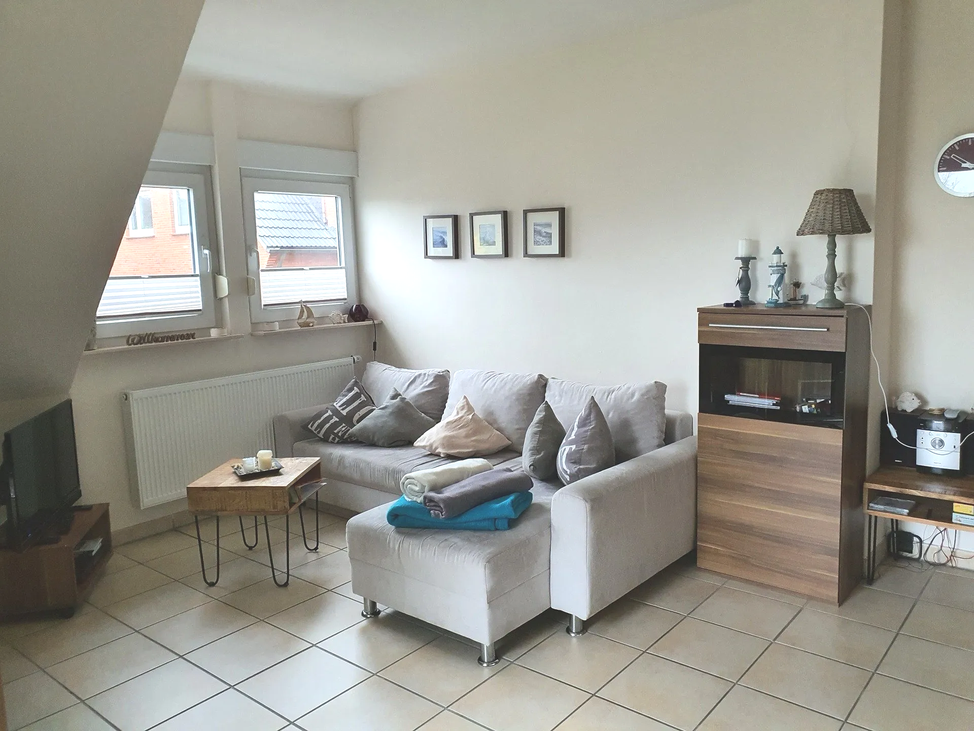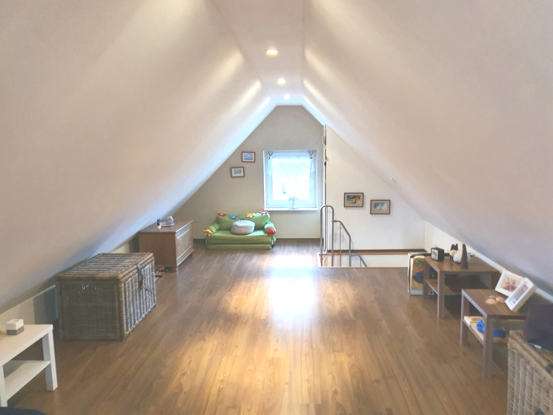 In der Wohnung im 1. Obergeschoss finden Sie drei lichtdurchflutete Räume, ein Bad mit Dusche und einen Dachboden, der bei schlechtem Wetter als Kinderspielzimmer genutzt werden kann.