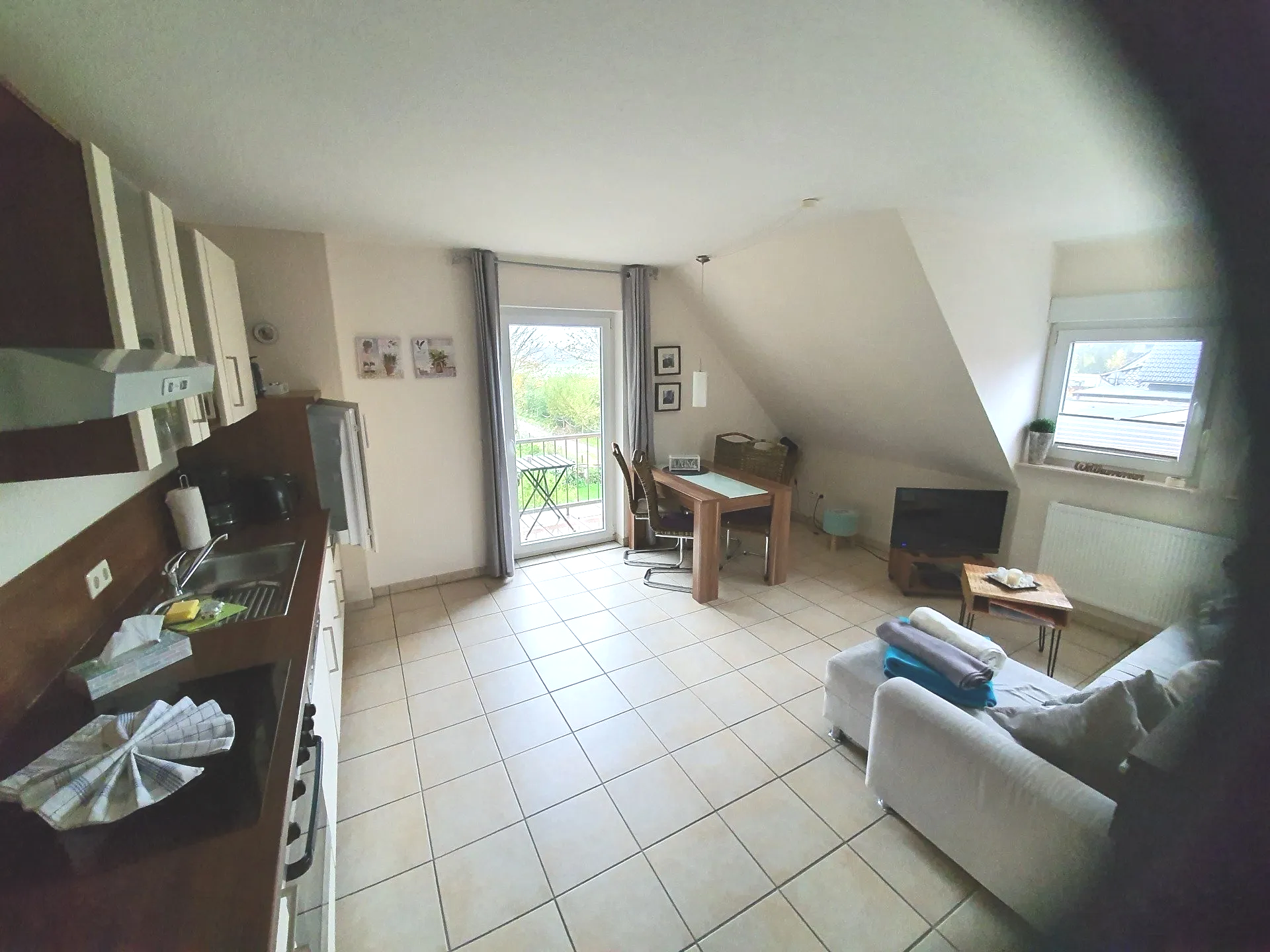 - Im kombinierte Wohn- Esszimmer mit moderner Küchenzeile findet sich sowohl Platz, um köstliche Mahlzeiten zuzubereiten, als auch um abends in Ruhe mit Ihren Lieben zu entspannen.